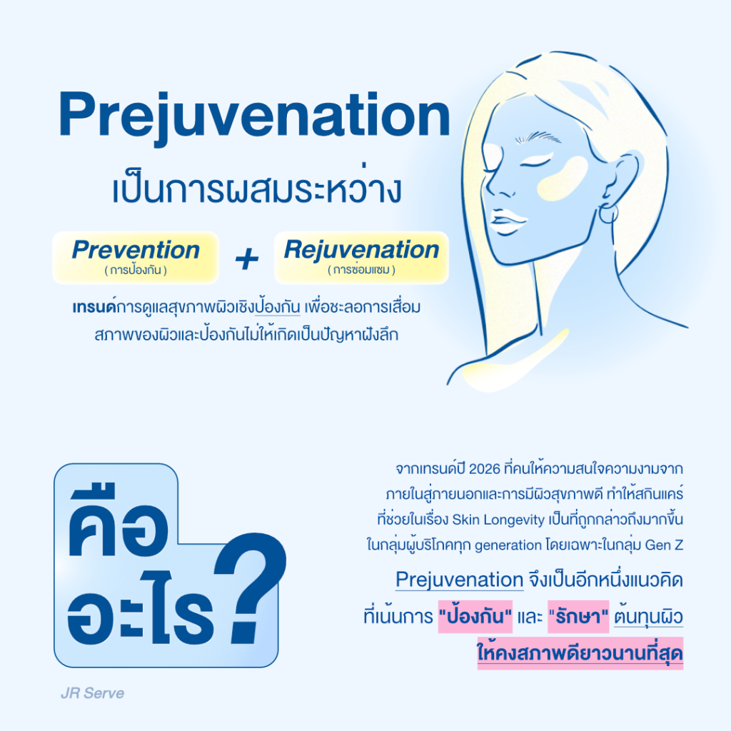 จากกระแส 𝗦𝗸𝗶𝗻 𝗟𝗼𝗻𝗴𝗲𝘃𝗶𝘁𝘆 ทำให้ Prejuvenation กลับมาเป็นเทรนด์ที่ถูกพูดถึงอีกครั้ง เพราะการดูแลสภาพผิวของคนเจนใหม่ ไม่ใช่แค่การทาครีมไปวัน ๆ แต่คือการรักษา “ต้นทุนผิว” ให้คงสภาพดียาวนานที่สุด